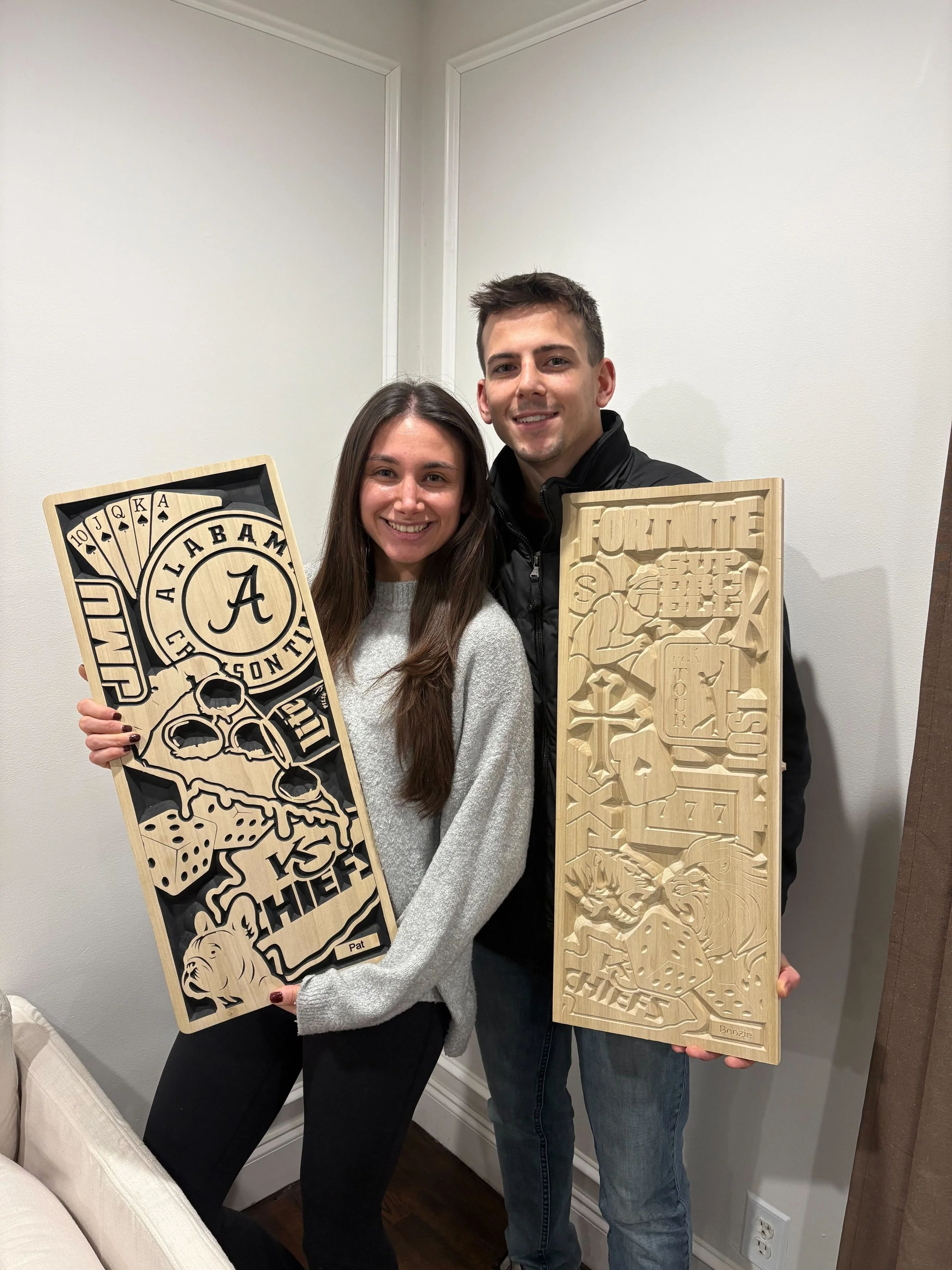 Run by a hardworking, family-oriented craftsman, this one-man shop is fueled by a passion for woodworking and creativity. Every piece is made by hand with attention to detail and heart, with the goal of creating unique, custom pieces that turn special moments into unforgettable gifts.
